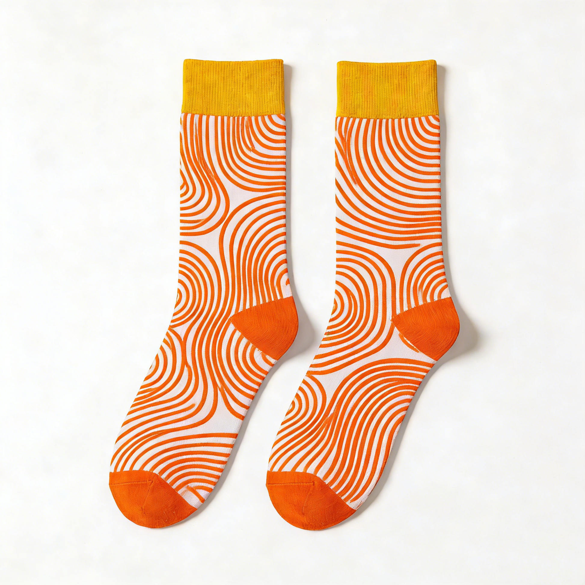 Step into style with these vibrant Orange and White Swirling Socks! Featuring a mesmerizing spiral pattern that dances across premium fabric, these socks bring a pop of personality to any outfit. Perfect for adding a fun twist to your everyday look, whether you're lounging at home or showing off your bold fashion sense. Soft, comfortable, and impossible to ignore—your feet will thank you for the upgrade!