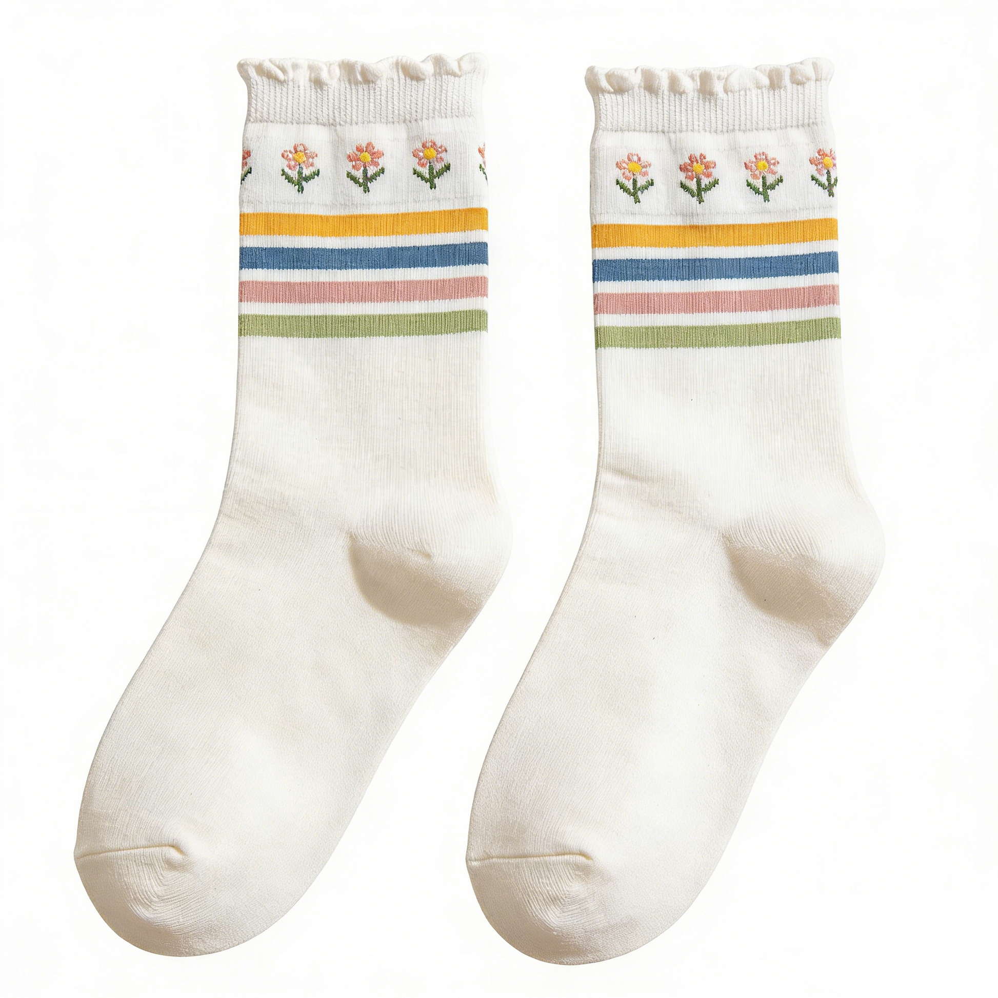 White Striped Mid-Calf Socks